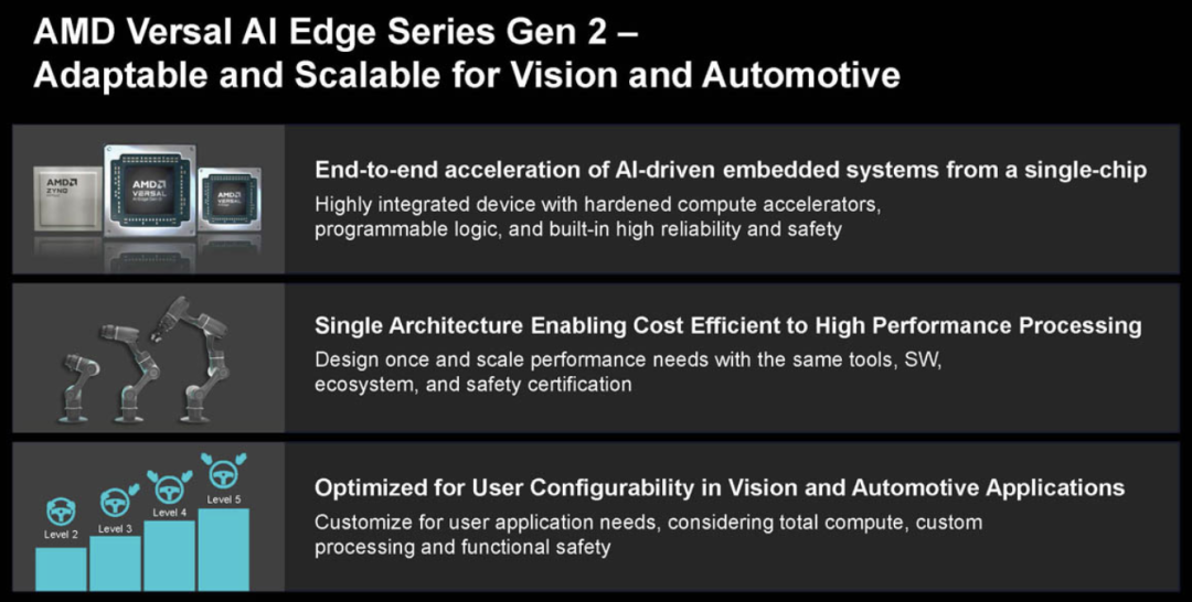 AMD Versal AI Edge Gen 2 的应用场景非常广泛,特别是在汽车和视觉处理领域。