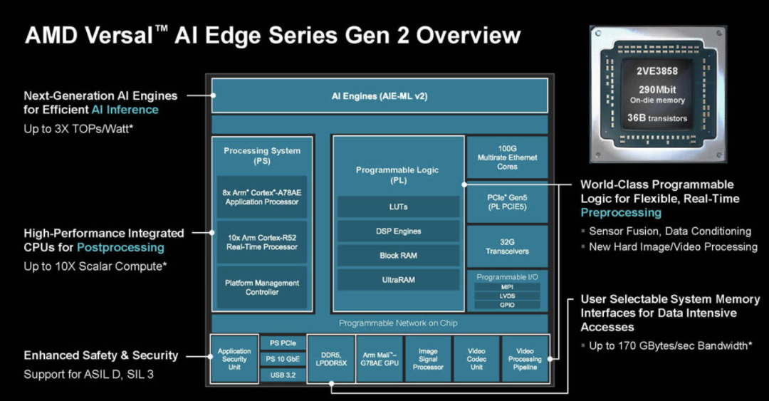 Versal AI Edge Gen 2 芯片专为视觉和汽车应用设计,提供了从数据预处理到推理,再到结果后处理的全栈解决方案,且以低延迟为特点。这款新产品的技术特点和应用前景,以及它在边缘计算和汽车领域的重要性。