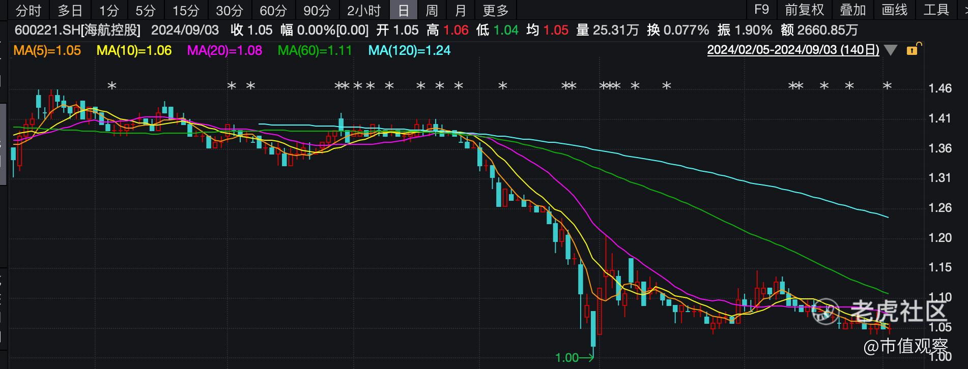 尽管如此,公司似乎还没有回到足够安全的轨道。7月份至今,海航的股价一直徘徊在1元生死线之上。