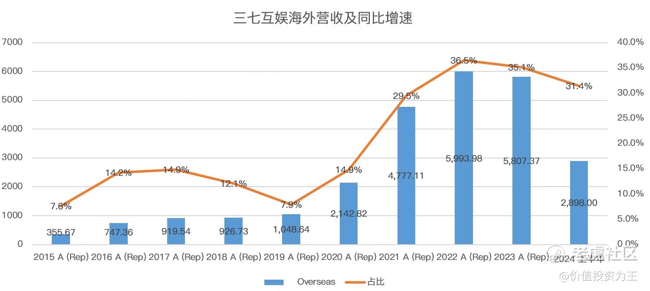 三七互娱今年上半年海外市场营收29亿,占总收入的比重达到 31%: $三七互娱(002555)$