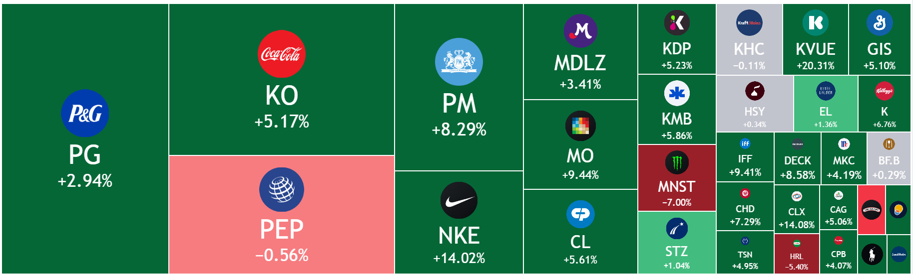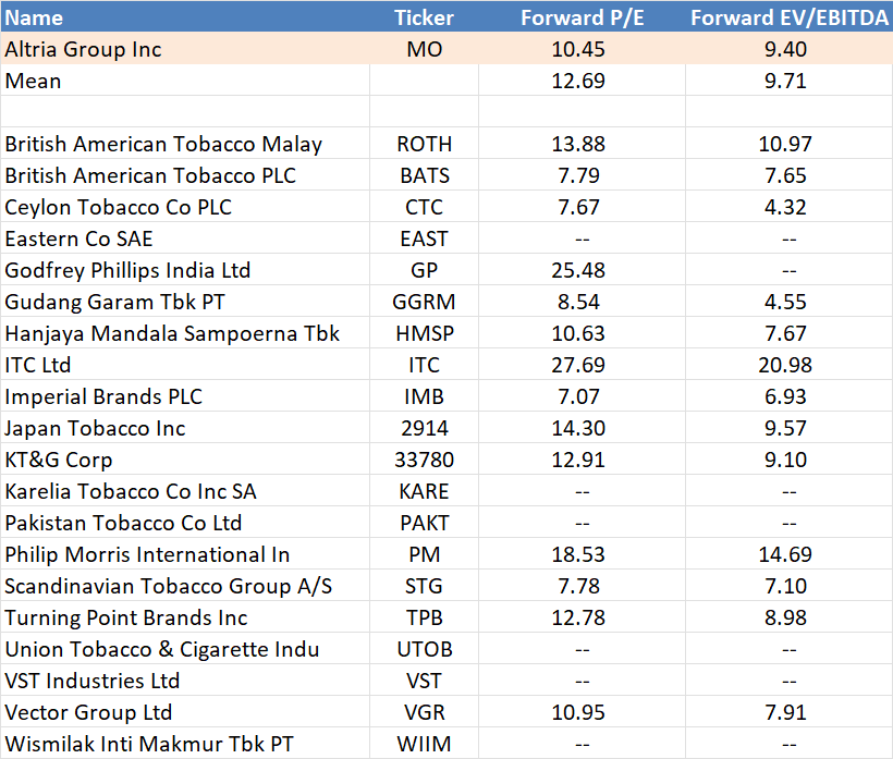 这些烟草巨头当中,又以 $奥驰亚(MO)$ 和 $菲利普莫里斯(PM)$ 的涨幅最大,并且他们相对于行业平均水平的估值更高,也代表目前市场对它们的信心较为充足。