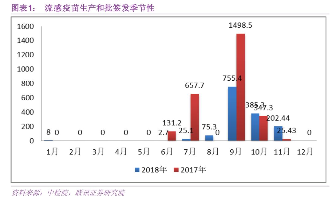 而根据往年生产规律,适应11月份后集中到来的流感疫苗接种高峰,疫苗月度生产分部也呈现高度季节性,通常下半年才开始生产和批签,9月份(提前一到两个月)是全年疫苗生产和批签发高峰,11月份就基本完成当年全年疫苗的生产和批签,开始进入下一年疫苗生产准备阶段。