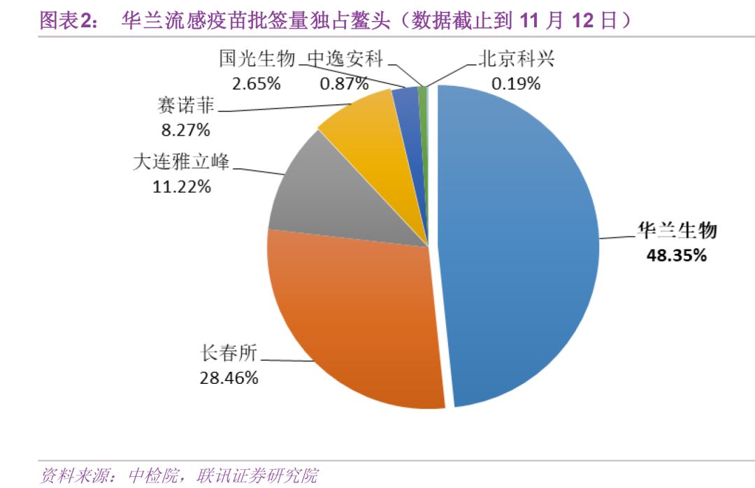 2.公司流感疫苗批签量独占鳌头,市占率48.34%。