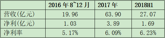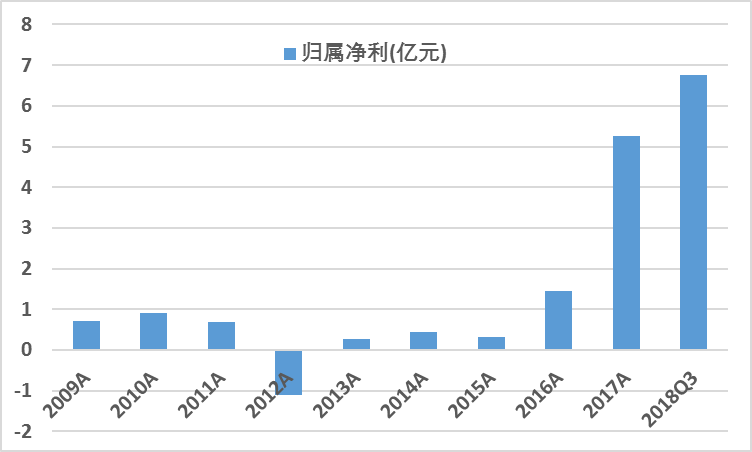 2010年公司营收8.8亿元,归属净利9000多万元;2017年公司营收154亿元,归属净利超过5亿元;2018年前三季度营收134亿元,归属净利6.77亿元。