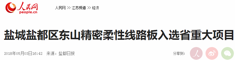 不仅如此,公司2017年开始在江苏盐城继续扩产FPC、LED等产能,该项目还入选江苏省重大项目,有官方报道如下: