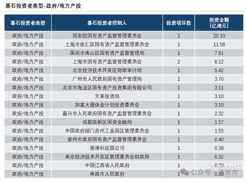 政府/地方产投合计投资70.98亿港元,占比54.03%;