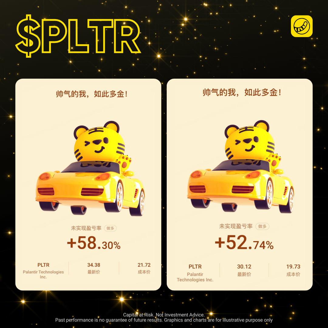 恭喜虎友 @JanetYellen 和 @RoyYep 通过交易Palantir正股分别获得58%和52%的回报