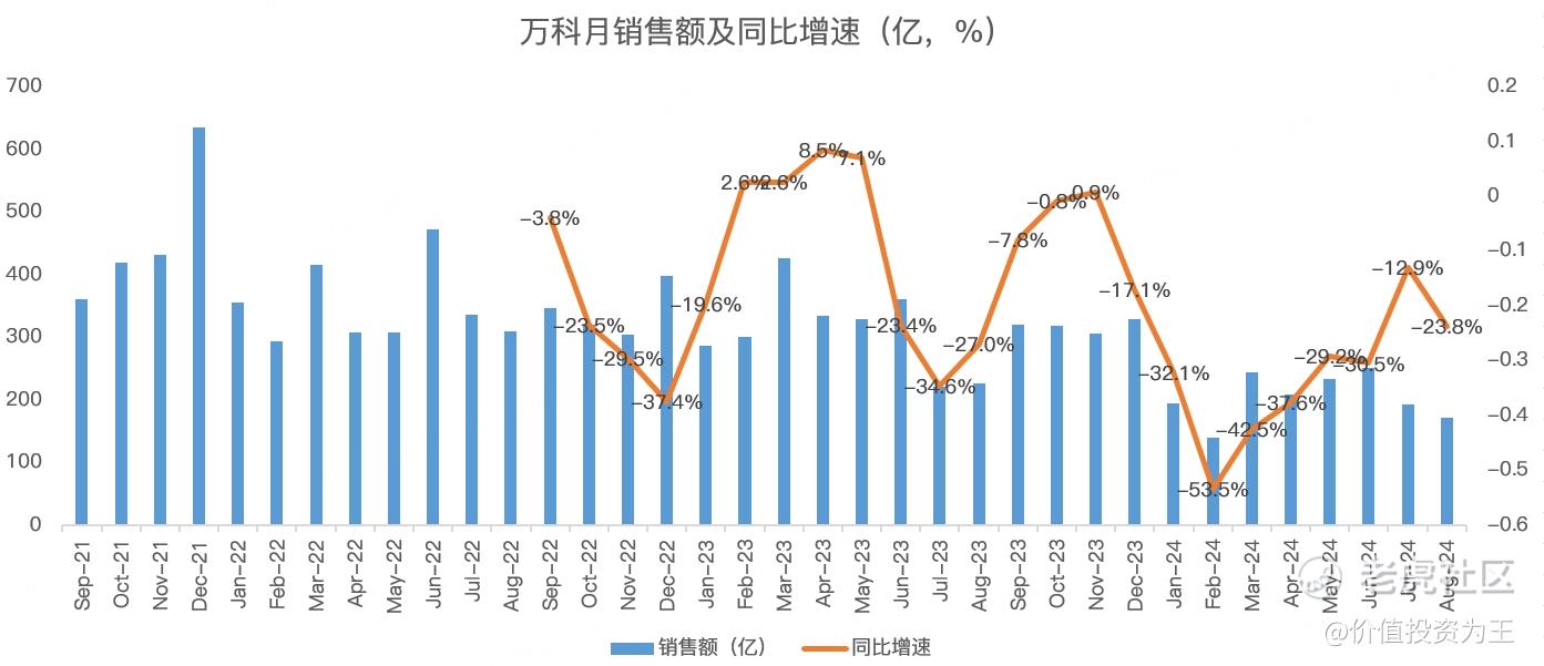拿地产行业优等生万科来说,8月销售额172亿,同比下跌23.8%,下滑幅度较此前明显扩大: