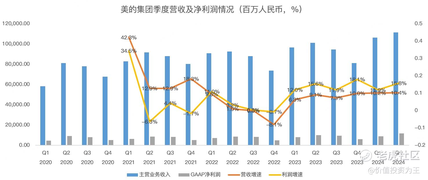 先来看业绩,今年二季度,美的的营收达到1116亿人民币,同比增长10.4%,净利润118亿,同比增长15.8%: