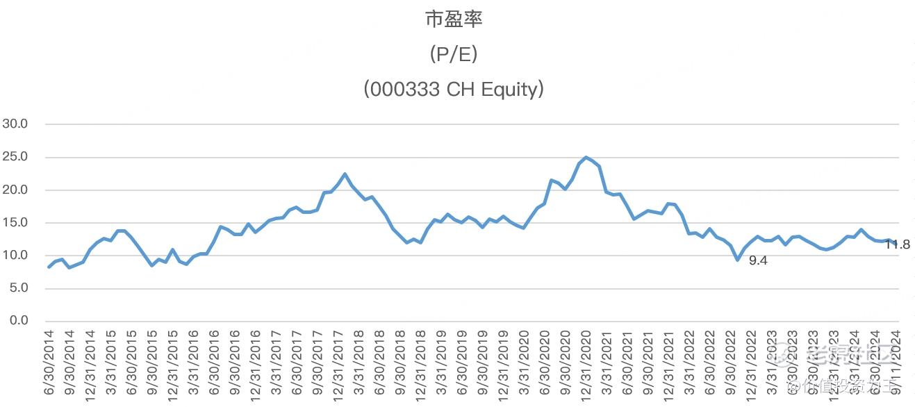 但看估值,美的集团的市盈率不足12PE,处于历史低位:
