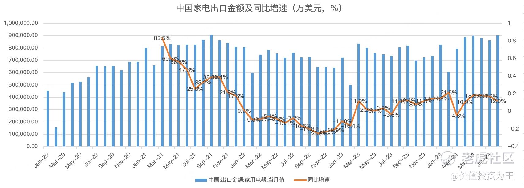 另外,根据海关公布的数据,今年8月,家电出口额达到90.3亿美元,同比增长12%,单月出口额为历史第二高!
