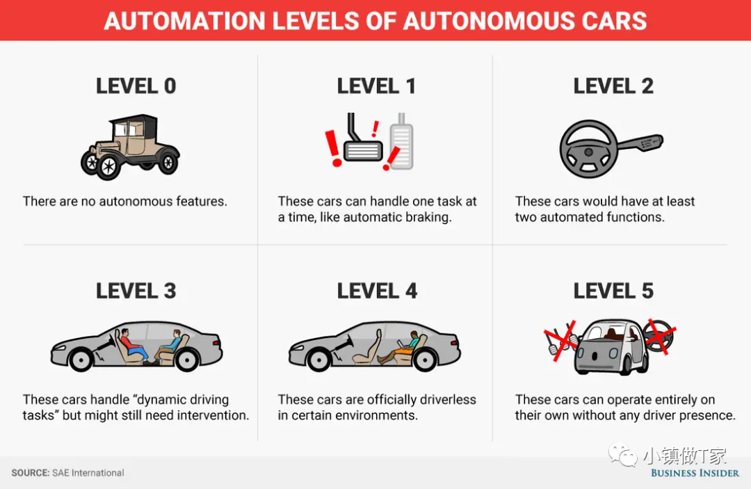 可能很多人对L4级别的自动驾驶还没什么概念,这里先科普一下:目前汽车界把自动驾驶一共分为六个等级: