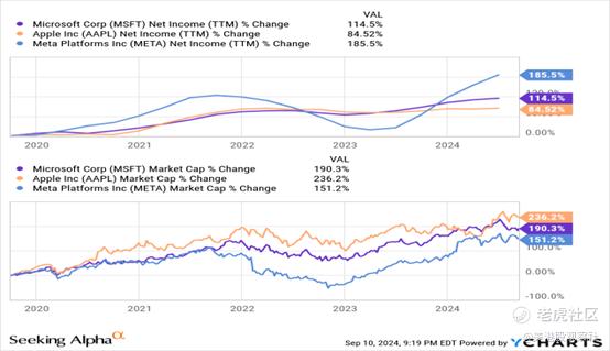 一些投资者还担心监管问题。谷歌因其谷歌广告业务而受到司法部的攻击,司法部声称谷歌非法经营垄断。过去有很多针对大型科技公司的反垄断案件,包括微软、Meta Platforms和苹果,但这些案件从长远来看从未对这些公司造成实质性伤害。这些公司没有被拆分,利润也没有下降——恰恰相反:微软、苹果和Meta Platforms比以往任何时候都更有价值、更有利可图: