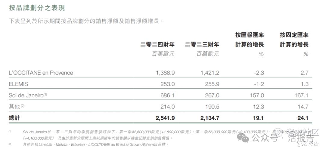 欧舒丹在奢侈品及美妆消费品产业的冲击下,业绩依然稳中有增。欧舒丹7月26日公布的2024财年业绩报告显示,公司财年内录得25.42亿欧元的销售额,2021年收购的护肤品牌Sol de Janeiro是盈利的最主要贡献者。