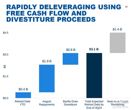 最后,西方石油在其债务减少和剥离计划方面取得了实质性进展。到2024年第三季度末,公司可能会实现约38亿美元的本金债务减少,占其短期45亿美元债务减少目标的约85%。这一举措得到了各种剥离收益的支持,如8.18亿美元的Barilla Draw剥离和7亿美元的Western Midstream Partners普通单位销售。债务减少的进展通过减少利息支出和增加增长投资的能力,增强了公司的财务状况。