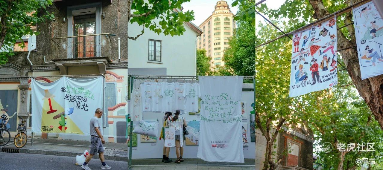 走在淡水路上,抬头就能看见被印在T恤、床单甚至袜子上的诗歌、摄影、绘画等作品,生活市井的海派气息一览无遗,原来艺术并不只存在于四四方方的场馆,也可以在没有天花板的街边晾衣杆上随风摇曳;