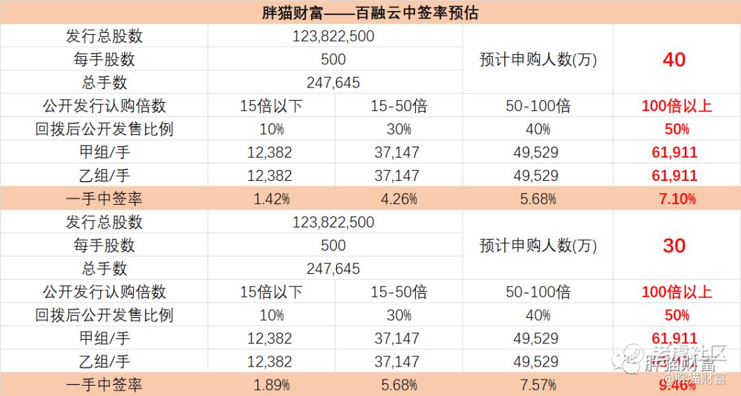 【胖猫分析】从中签率角度看,由于此次百融云一手入场费16,060.23港币,入场费定价比较高。百融云此次申购人气还不错,保守估计申购人数在30-40万人左右比较合理,根据AIPO数据预测最终超购会超过100倍。此次百融云预计一手中签率在7%-10%左右,中签水平较高,预计甲尾申购100手以上能稳中1手。