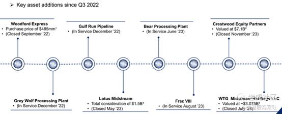 在过去的两年中,Energy Transfer通过一系列重要的收购大幅增加了其资产基础,如下图所示,包括Crestwood Equity Partners和WTG Midstream,交易总价值为102亿美元,大大增强了Energy Transfer的天然气储存、NGL和原油服务业务。