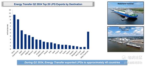 Energy Transfer向40个国家出口LPG,其中中国、韩国和埃及是前三位,如下所示。