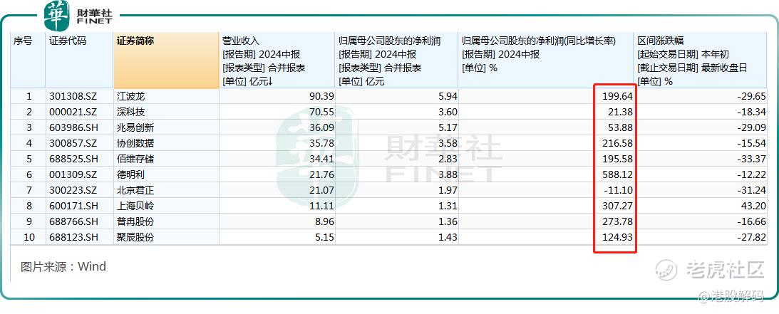 从2024年业绩来看,主营存储芯片相关产品的公司整体在上半年取得了不错的利润表现,但年内多数上市公司的股价遭遇双位数下跌。