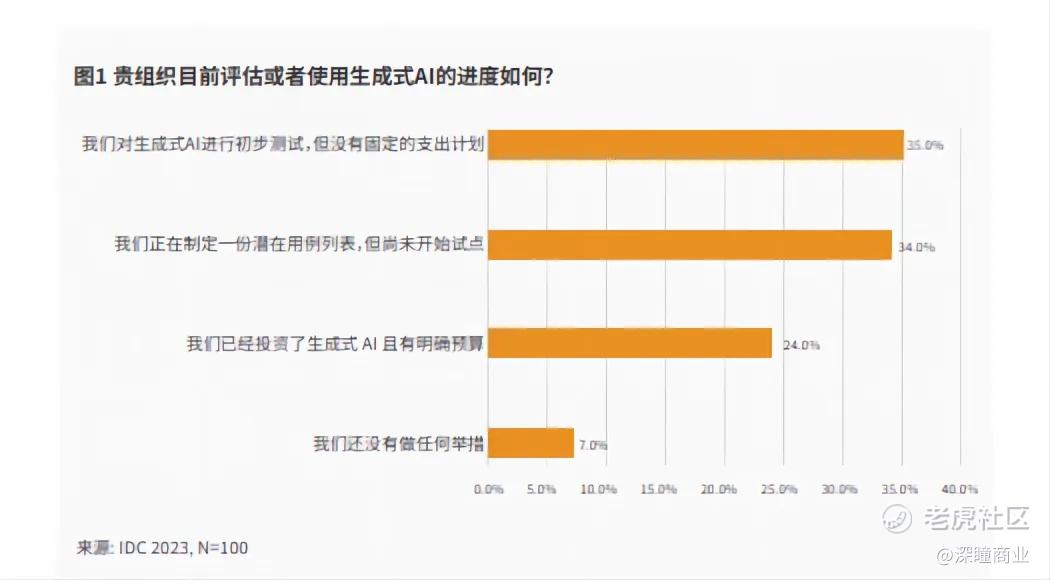 全球范围内,真正有意愿、有能力为AI付费的用户大多数集中在B端。根据IDC在2023年四季度的调研,对生成式AI完全没有规划的企业只有7%,也就是说超过九成的企业至少已经意识到了AI与未来的强关联;其中已编列明确预算的企业有24%,这才是当前AI付费的主力市场。