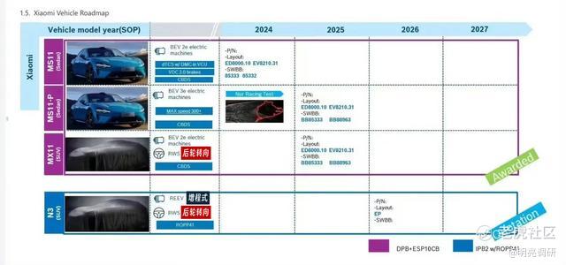 此外,博世公布的信息显示,小米 SU7 和 MX11 将采用 DPB(电子助力制动系统)和 ESP(电子稳定程序)制动方案,而小米 N3 将采用博世的 IPB 2.0(智能助力制动系统),这可能是博世最新一代的制动技术。