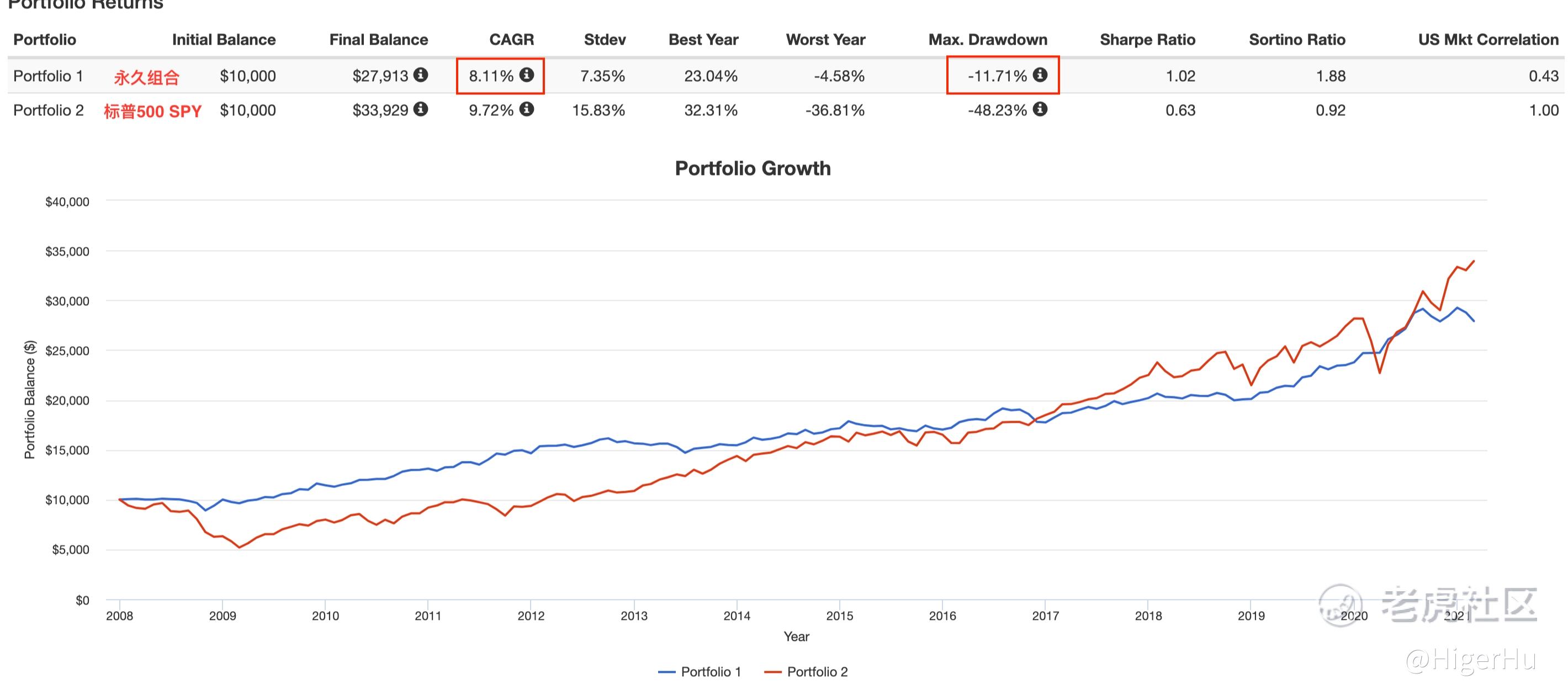 永久组合在A股和美股的表现如下: