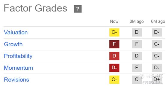 尽管美国雅保的看涨论点已经减弱,但过去六个月其长期触底论点并没有显著恶化。尽管由于2024年复苏乏力,华尔街对美国雅保的估计已经下调,但美国雅保的动量评级在过去三个月有所改善(从"F"提高到"D-")。此外,其估值也有所改善(从"D"提高到"C-"),证实了长期触底的观点。