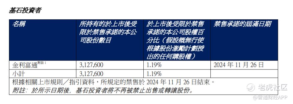 此外,基石投资者金利富通所持有的趣致集团1.19%股份也将于2024年11月26日解除禁售。金利富通是2023年11月10日在香港注册的有限合伙基金,主要从事股权投资。金利富通的唯一普通合伙人为中国北方证券集团有限公司,唯一投资管理人及基金管理人为中国北方环球资产管理有限公司。