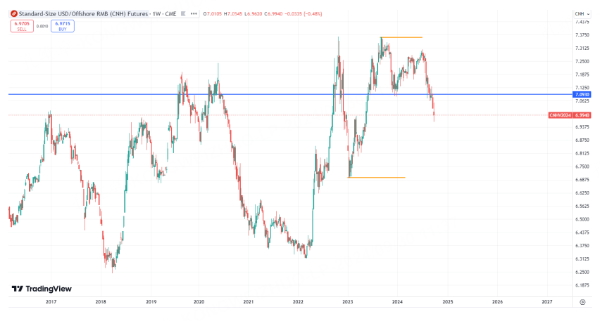 但是,我们不可忽略的变数依然存在,美国大选之后的政治和经济局面,都是有可能改变现有的趋势预期的。一种比较悲观或者担忧的情况会是,新总统彻底推翻拜登政府的玩法,引发金融市场牛转熊(亦或者是大级别的调整)。并且需要特别留意的是,美国那种让其他国家货币先升后贬的套路并非新鲜事,这次降息后,新兴市场货币多多少少的反弹也是类似的状况。