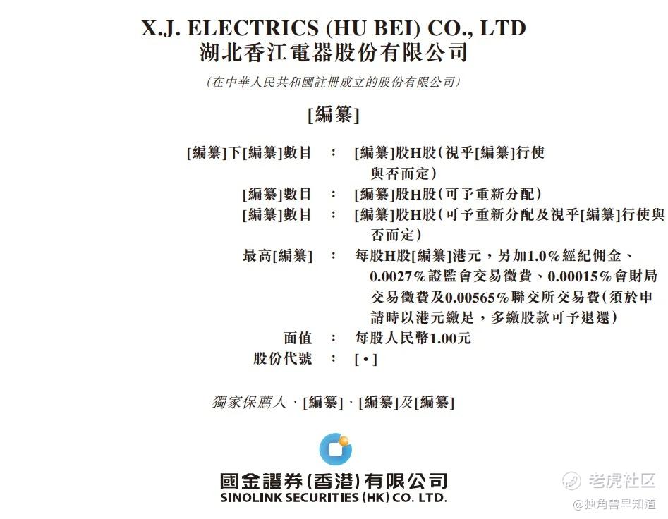 据港交所9月29日披露,湖北香江电器股份有限公司向港交所主板提交上市申请,国金证券(香港)有限公司担任独家保荐人。