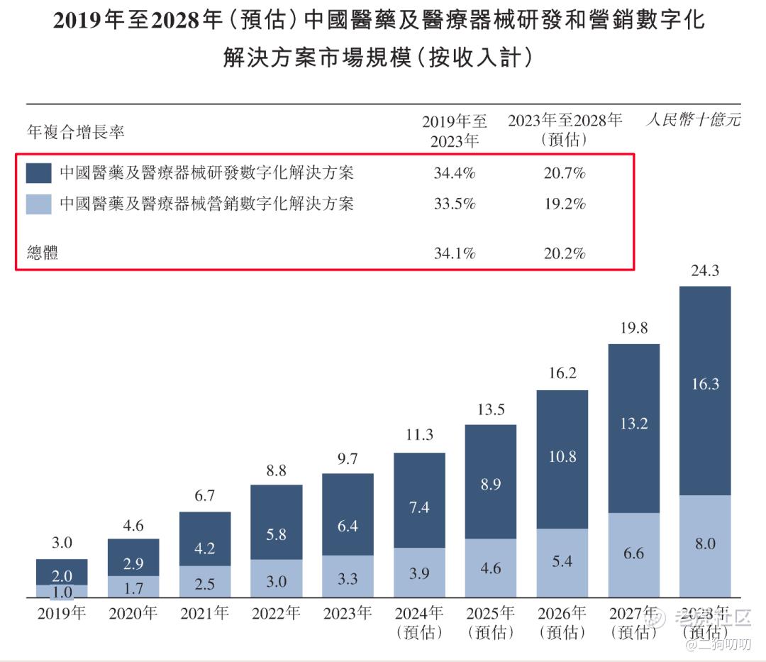根据灼识谘询的资料,按照以2023年营收计,公司是中国医药及医疗器械研发和营销领域最大的数字化解决方案供应商,市场份额为5.9%。