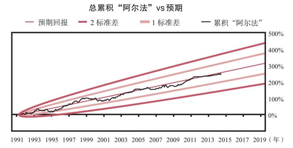 基于这一理论,桥水开发了“纯粹阿尔法”投资策略,投资者不仅可以得到他们选择的资产类别(如标普500指数、债券指数或大宗商品指数)带来的受益,还能从桥水在所在资产中挑选和押注资产产生额外受益。这一策略在超过26年的时间里取得了接近300%的累积受益。2008年金融危机期间,桥水的旗舰基金业绩增长超过14%。