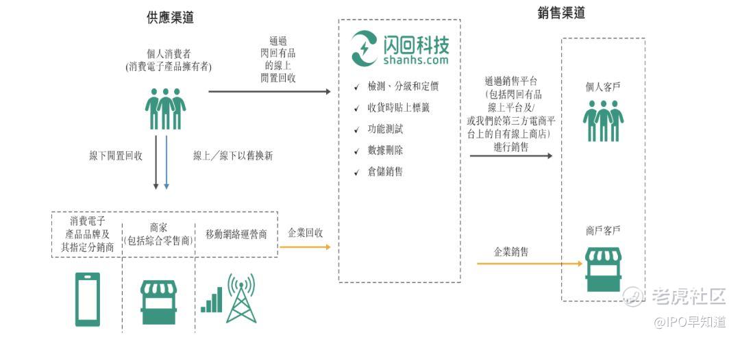 成立于2016年的闪回科技基于自己的专有检测、分级与定价技术以及回收与销售平台,以及与上游资源合作伙伴的战略合作,致力于提供一体化的综合解决方案,从以旧换新的方式启动回收并促成新机的销售,对采购的二手手机进行标准化转售。