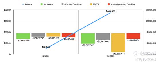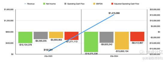 公司手头有额外的现金是件好事。然而,这是以相当高的成本换来的。假设所有这些权证都被行使,那就是公司账簿上额外的580万股。根据最近一个季度结束时的数据,这意味着现有股东的稀释率为14.7%。如果公司处于正向甚至中性的现金流状态则会更为乐观。但遗憾的是,情况并非如此。在上图中,你可以看到2024财年第二季度的财务结果。这些数据与2023年第二季度的结果进行了对比。在下面的图表中,你可以看到上半年与去年同期的对比。