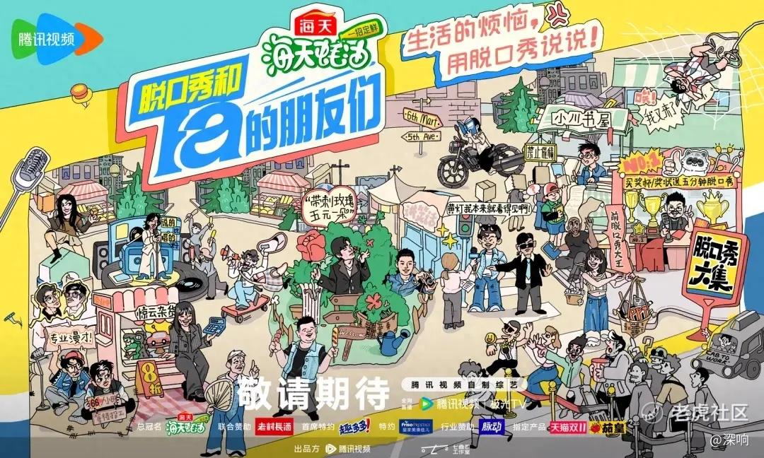 得益于脱口秀的话题强传播力和情绪延展力,节目在腾讯视频播出的同时,自然串联起了各大社交内容平台,通过节目切片分享、互动活动等多种营销手段,极大地助力了品牌在全域范围内的曝光与影响力的提升。特别是背靠腾讯内容生态,合作伙伴如海天、老村长、趣多多等品牌都能够通过微信视频号、公众号等私域渠道,发布与节目内容密切相关的信息,进一步提升了用户的参与度和转化可能。