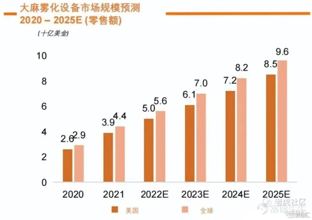 从市场端来看,随着CBD市场的快速发展,CBD雾化设备市场也呈现出快速增长的姿态,雾麻科技这类行业上的领先企业正迎来难得的机遇。欧睿国际预测,2021-2025年娱乐用CBD市场增长保持19.2%的增速。至2025年,全球CBD市场规模或达96亿。