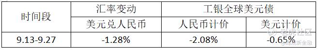 以工银全球美元债A人民币为例,截至9月27日,近两周下跌幅度高达-2.08%,主要原因就是债券久期较长,此前美债收益率下行该基金涨幅可观,那么同样的,当美债收益率上行,叠加人民币升值,跌的也就更狠。