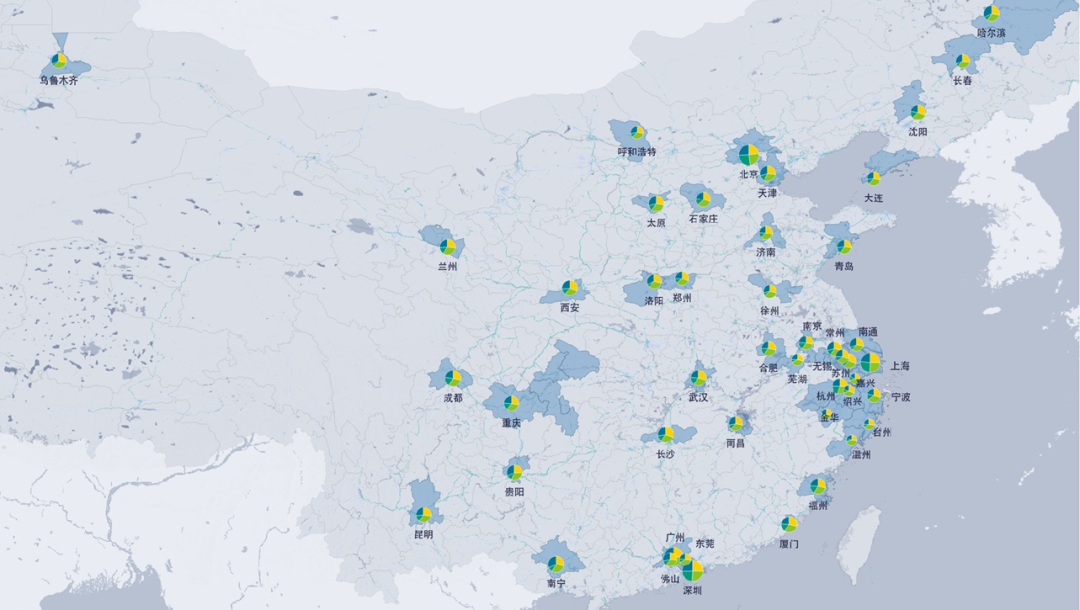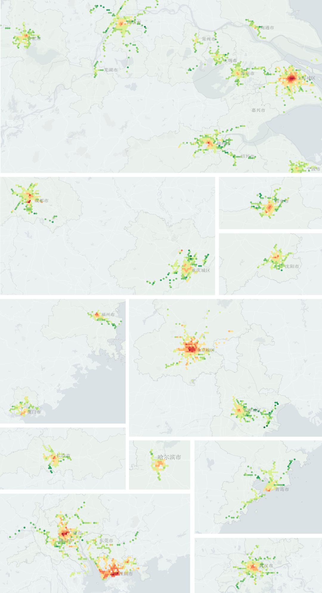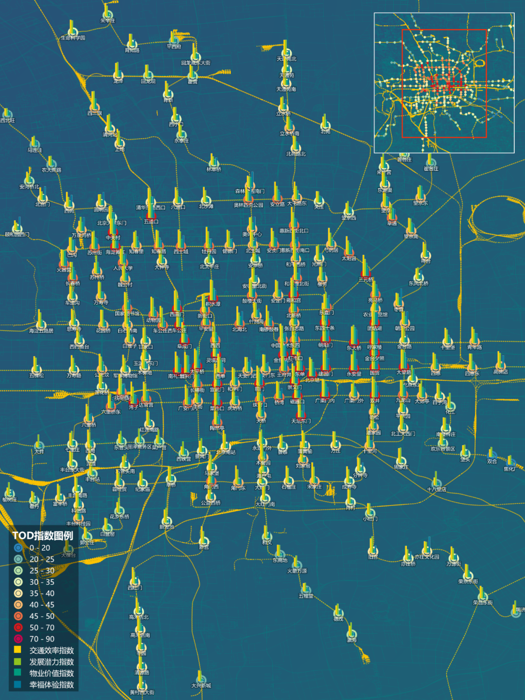 下图为根据最新站点TOD指数的成果制作的城市TOD热力地图示意,城市TOD热力区域一目了然。