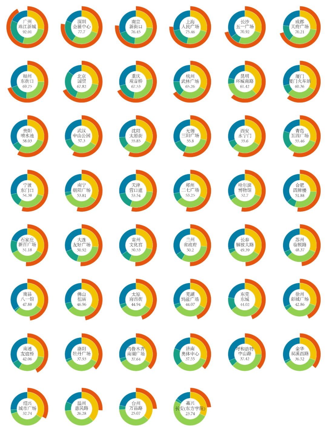 新版报告将发布各个城市站点TOD指数排名首位,下图为上一版指数成果,供参考。