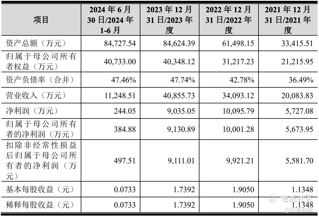 2021年度至2024年上半年,六九一二的营收分别约为2.01亿元、3.41亿元、4.09亿元和1.12亿元,净利润分别约为5727.08万元、1.01亿元、9035.05万元和244.05万元,扣非后净利润分别约为5581.70万元、9921.21万元、9111.01万元和497.51万元。