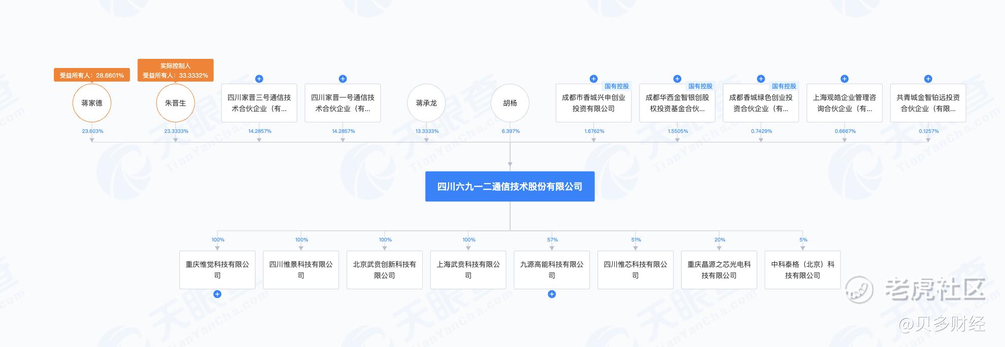 天眼查App信息显示,六九一二成立于2017年11月,前身为四川六九一二科技有限公司,位于四川省德阳市。目前,该公司的注册资本为5250万元,法定代表人为蒋家德,股东包括蒋家德、朱晋生等。