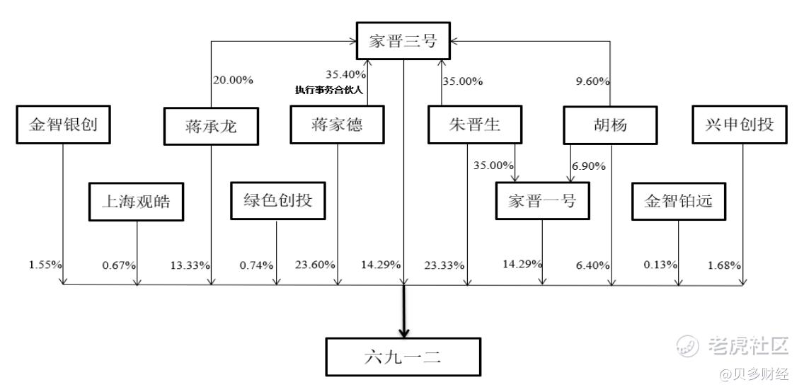 本次上市前,蒋家德为六九一二的实际控制人,且担任该公司董事长。目前,蒋家德直接持有该公司23.60%的股份。同时,蒋家德担任家晋三号执行事务合伙人并持有家晋三号35.40%的出资份额,从而间接控制该公司14.29%股份。