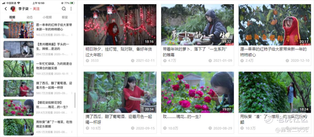 同样的尴尬情况也发生在其他入驻斗鱼的视频KOL上,李子柒的视频在斗鱼视频的播放量为10万左右,评论数平均20-30条。