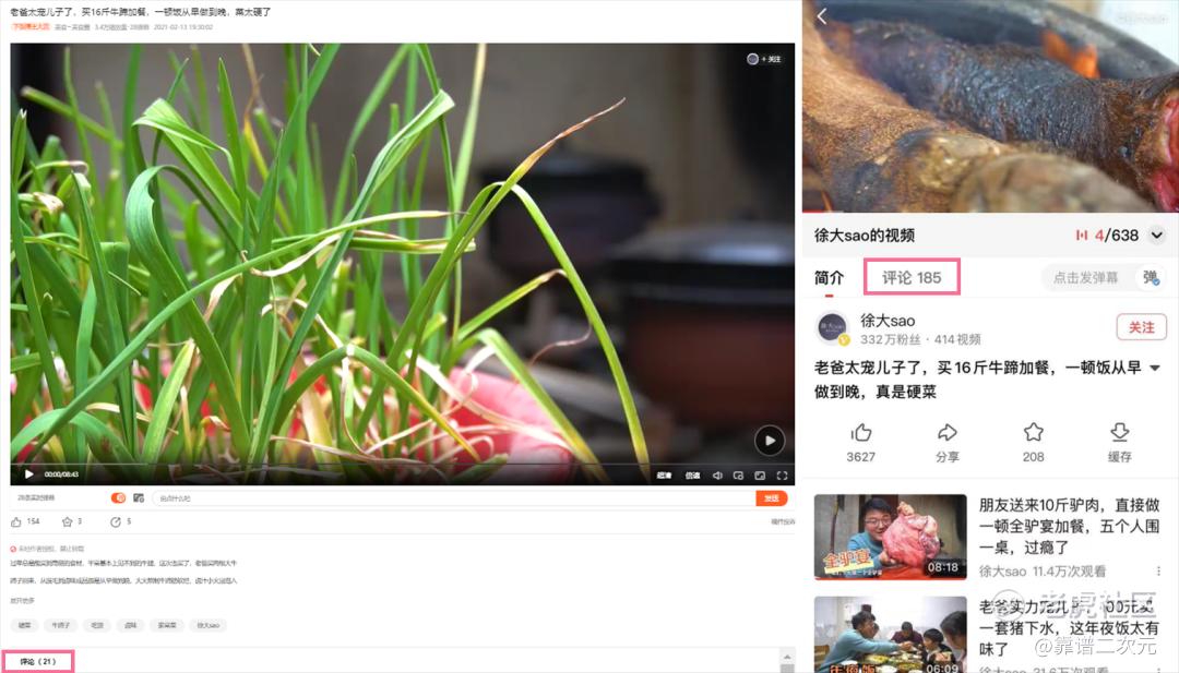 靠谱二次元(ID:kpACGN)发现徐大sao的视频在西瓜视频的播放量平均在20w到30w之间,评论数平均在200到300条左右;在B站视频平均播放量为60w-70w,评论数和弹幕数经常超过2000条。在斗鱼视频上,播放量普遍在10w上下,弹幕和评论却只有30条左右。