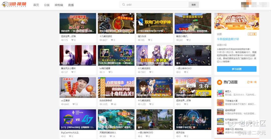 2020年11月斗鱼推出了“斗鱼视频造星计划”和“UP主激励计划”用来吸引有潜力的视频创作者。据靠谱二次元(ID:kpACGN)的观察,入选视频造星计划的作品播放量普遍偏低,比较差的在几十到几百不等,好一点的在几千,偶有个别作品播放量过万,但即便是那些“个中翘楚”,超过10w播放量的视频,却出现了弹幕和评论为零的尴尬状况。