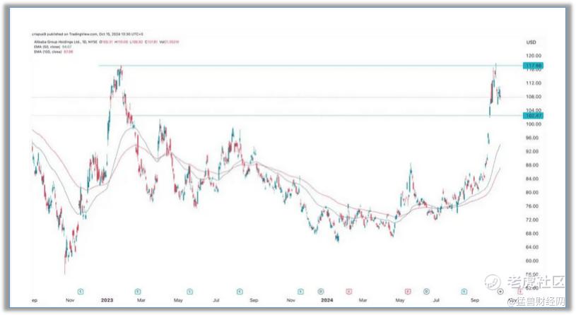 此外,阿里巴巴的股价目前已经在周线图上形成了一个杯柄形态。