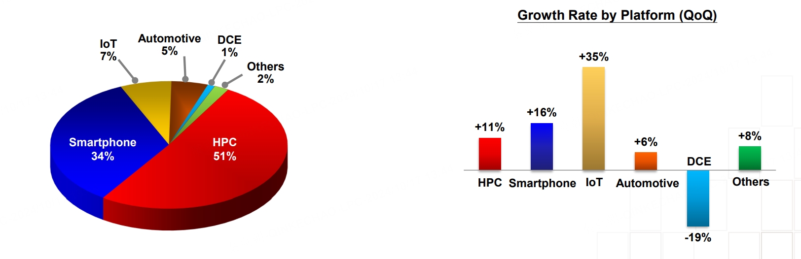 台积电业绩爆发主要得益于AI,今年三季度,高性能计算(HPC)贡献了51%的收入,环比增长11%;智能手机贡献了34%的收入,环比增长16%;IOT和汽车芯片保持了环比增长,仅数字消费电子环比下滑: