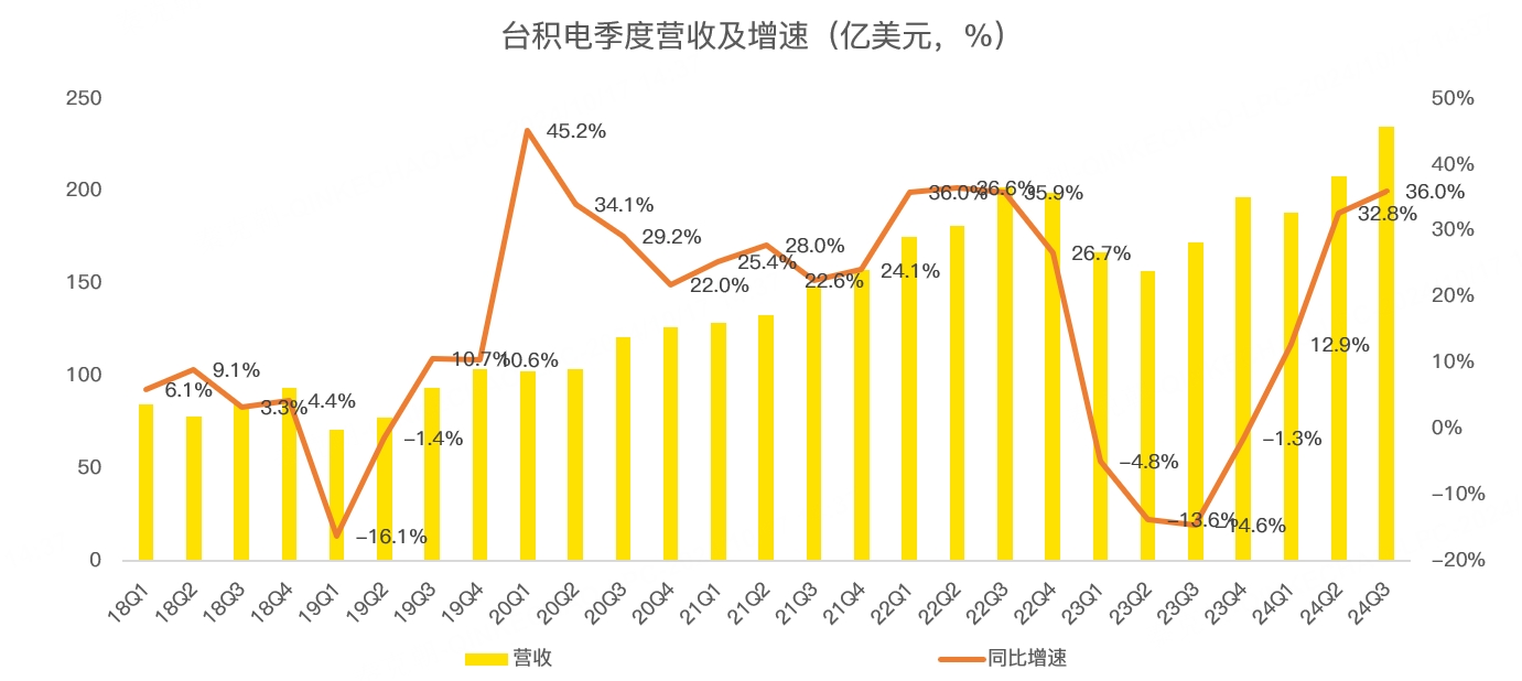 因此,台积电上调了2024年的营收增速,预计为30%,而此前指引在20%左右。