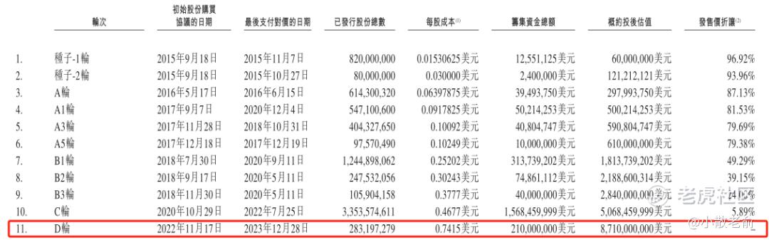 公司在上市之前共进行了11轮融资,最后一轮融资股东的成本价是每股0.7415美元,相当于5.76港元,而本次新股申购的价格是3.73~3.99港元,这样看的话好像也不贵